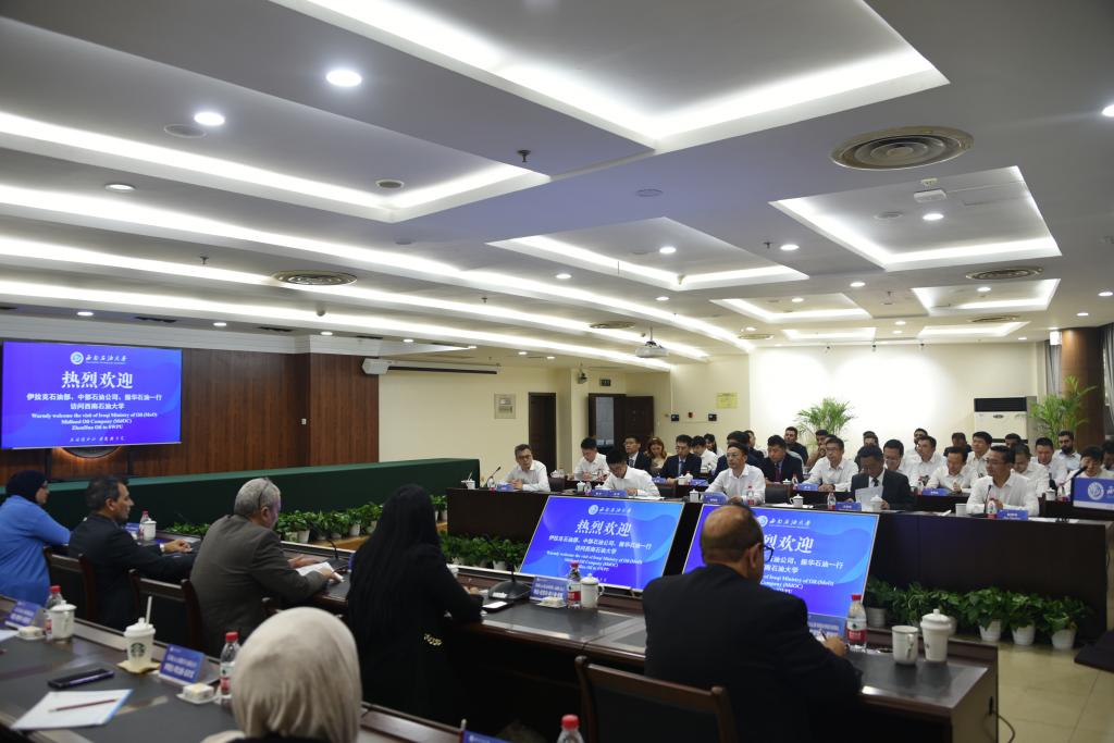 伊拉克石油部,振华石油控股有限公司人资法务部、研究院、伊拉克东巴石油公司,我校党办校办、党委学生工作(处)部、科研院(创新联合体)、研究生院(一流学科建设办公室)、国际处、石工院、继教院相关负责人参加座谈。