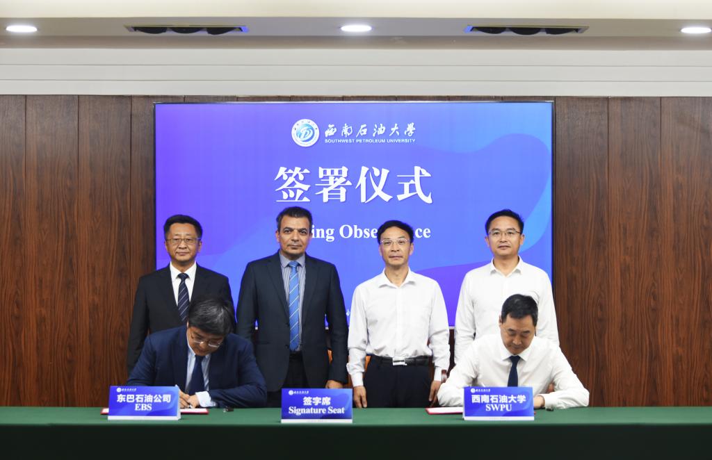 三方就国际学生联合培养、国际学生在校学习管理和文体活动开展、毕业生就业及企业员工培训等进行了交流探讨。继教院院长朱治富和东巴石油公司人资法务部经理袁睿代表校企双方签订了培训工作纪要。