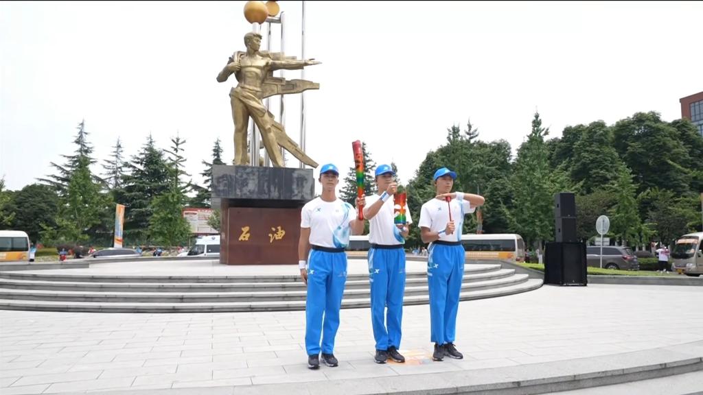陈永灿邀请火种护卫队点燃大运会火炬“蓉火”,宣布大运会成都站(西南石油大学)火炬传递开始。