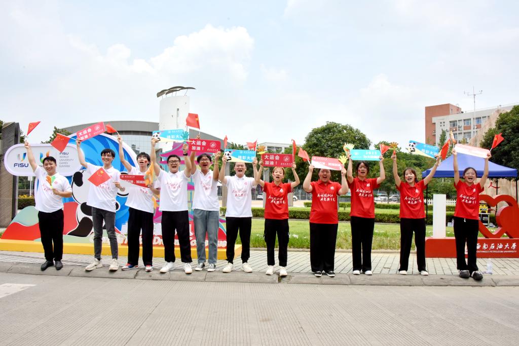 象征着光明、团结、友谊、和平的大运之火,从“蓉火”顶端太阳神鸟喷薄而出,也点燃了现场氛围。火炬从创业广场出发,途经南环路、博学路、院士林、飞翔路、梦溪步道等,最终抵达终点石油魂雕塑。火炬传递沿线,我校各单位师生代表以热烈的掌声和欢呼声为火炬手呐喊助威,整个校园洋溢着青春活力。