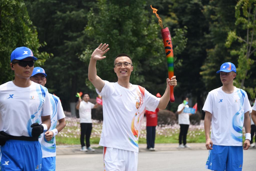 奋斗青春,放飞梦想!7月20日,成都第31届世界大学生夏季运动会火炬传递成都站第四日传递活动在我校成都校区成功举行。