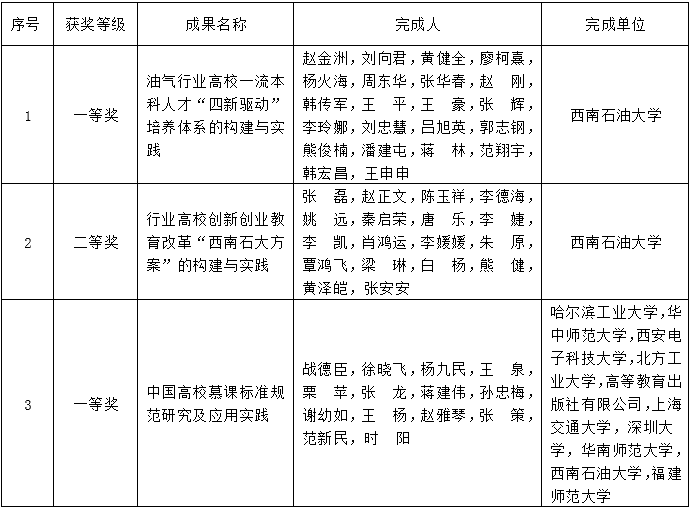 7月24日,教育部公布了2022年国家级教学成果奖获奖项目名单,我校独立完成和参与完成的2项成果获得高等教育(本科)国家级教学成果一等奖,独立完成的1项成果获得高等教育(本科)国家级教学成果二等奖。是四川省属高校、全国地矿油高校唯一独立获得国家级教学成果一等奖的高校。这也是2001年我校获一等奖后,22年来,四川省属高校再度获一等奖。