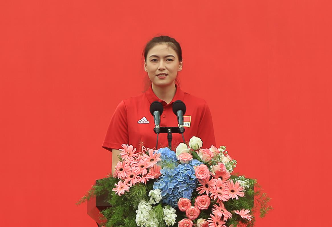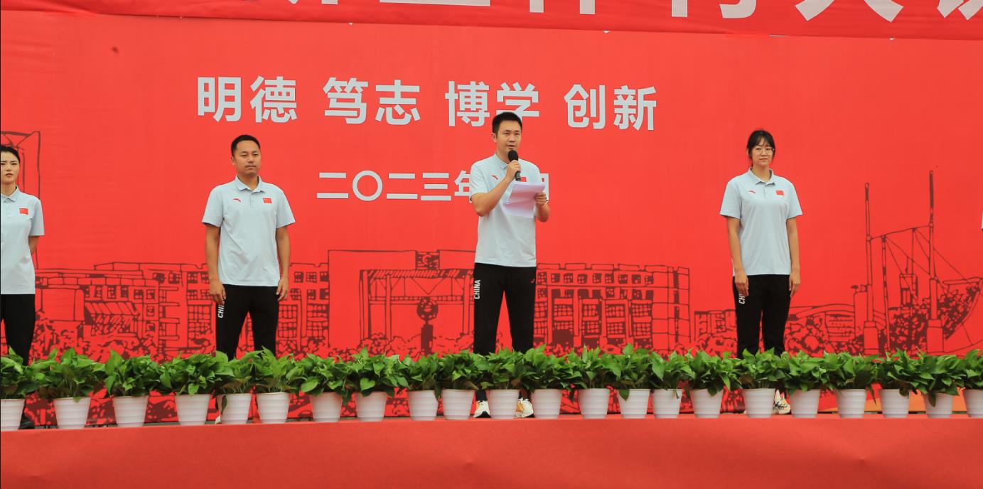 之后,原国家队队员、足球健将游梦佳,原国家队队员、网球健将蔡照,原国家队队员、游泳健将赵琢然,原四川省队队长、排球健将杨光和北京体育大学、北京大学篮球一级运动员张子业、孙珂筱等六位为我校体育事业蓬勃发展倾力付出的青年体育教师代表上台与同学们见面,随后,第31届世界大学生夏季运动会火炬手杨光老师代表青年体育教师发言,杨光老师勉励同学们在大学四年中要积极享受运动乐趣,认真掌握运动技能,坚持终身体育锻炼,完美收获健康身心。