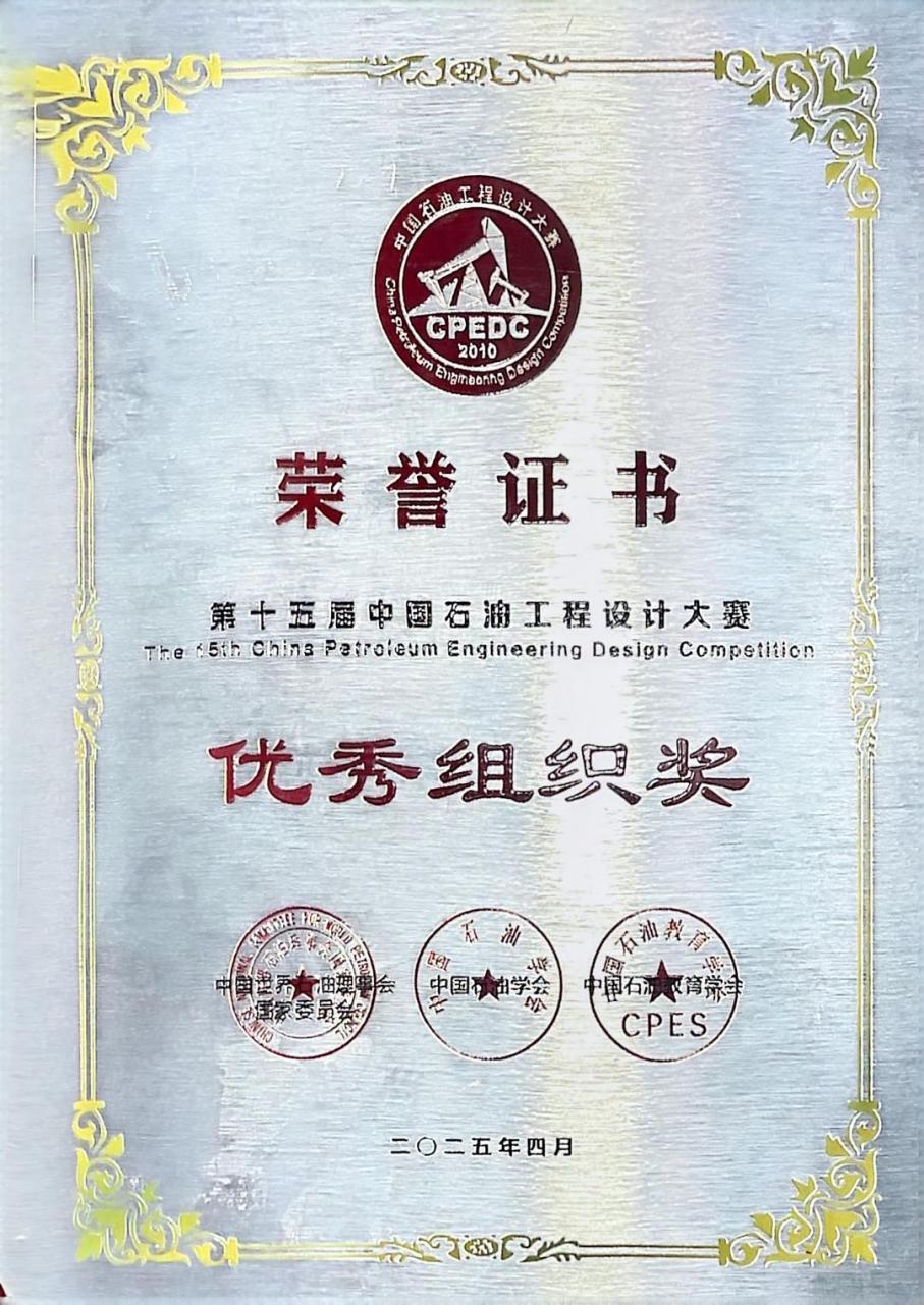 中国石油工程设计大赛被誉为石油教育界的“奥林匹克”。本届大赛设方案设计类综合组、方案设计类单项组、方案设计类创新组、国际赛道4个组别,吸引了国内47所高校及科研院所的4386支队伍报名参赛。经分赛区初审、复审、区域赛评比和总决赛现场答辩,1支队伍获得卓越杯,23支队伍获得一等奖。