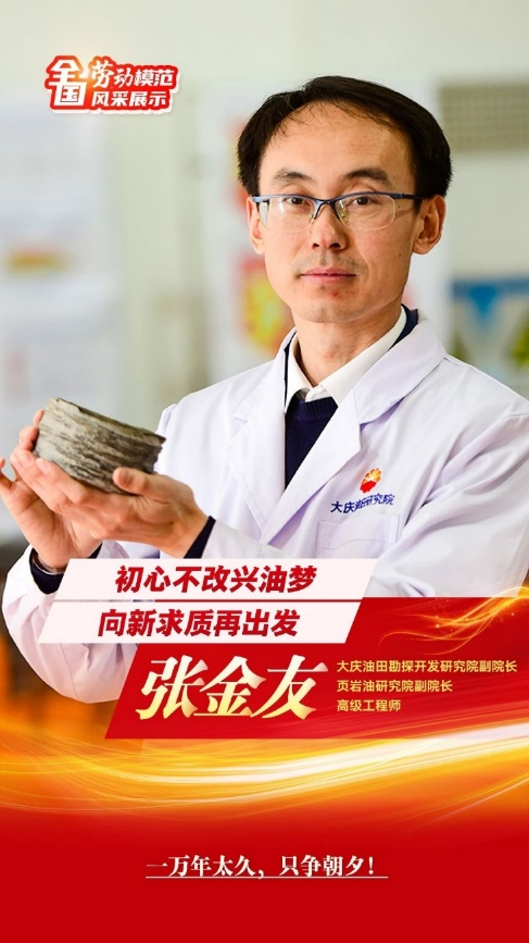 张金友,高级工程师,现任中国石油大庆油田勘探开发研究院副院长、页岩油院副院长,从事松辽盆地中浅层常规油、致密油和页岩油研究与部署工作。张金友扎根科研一线16年,破解陆相页岩油勘探开发世界级难题。他在只有头发丝1/500大小的纳米级孔隙中找到了石油,实现了陆相泥纹型页岩油从“0“到"1”的历史性突破,成果获2020年度中国地质学会十大地质科技进展;打破国外大石油公司高黏土含量页岩油不能获得高产的权威论断,创新建立陆相页岩油原位成藏理论,奠定大庆油田3000万吨原油稳产的资源基础,引领我国陆相页岩革命,有力保障了国家能源安全。