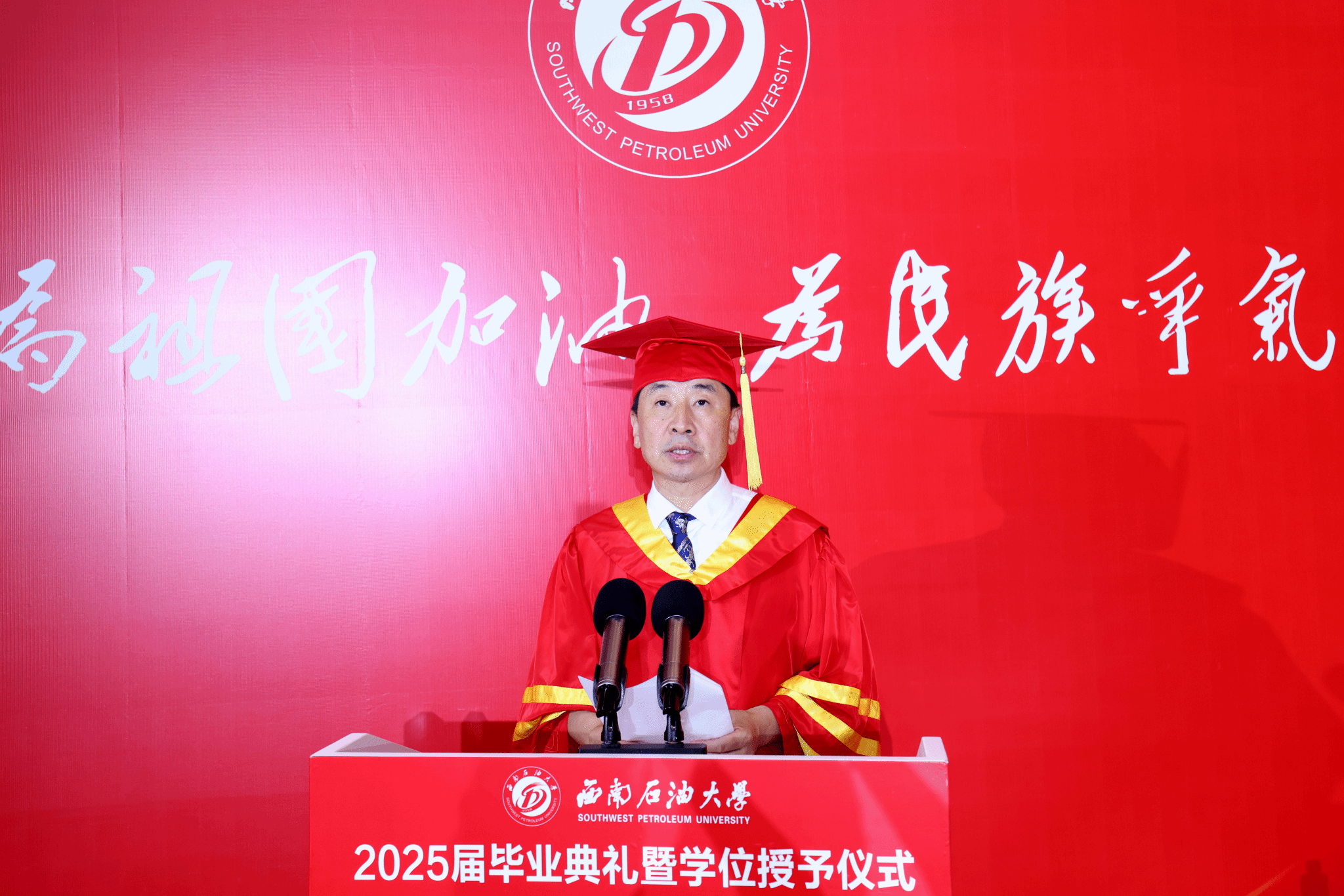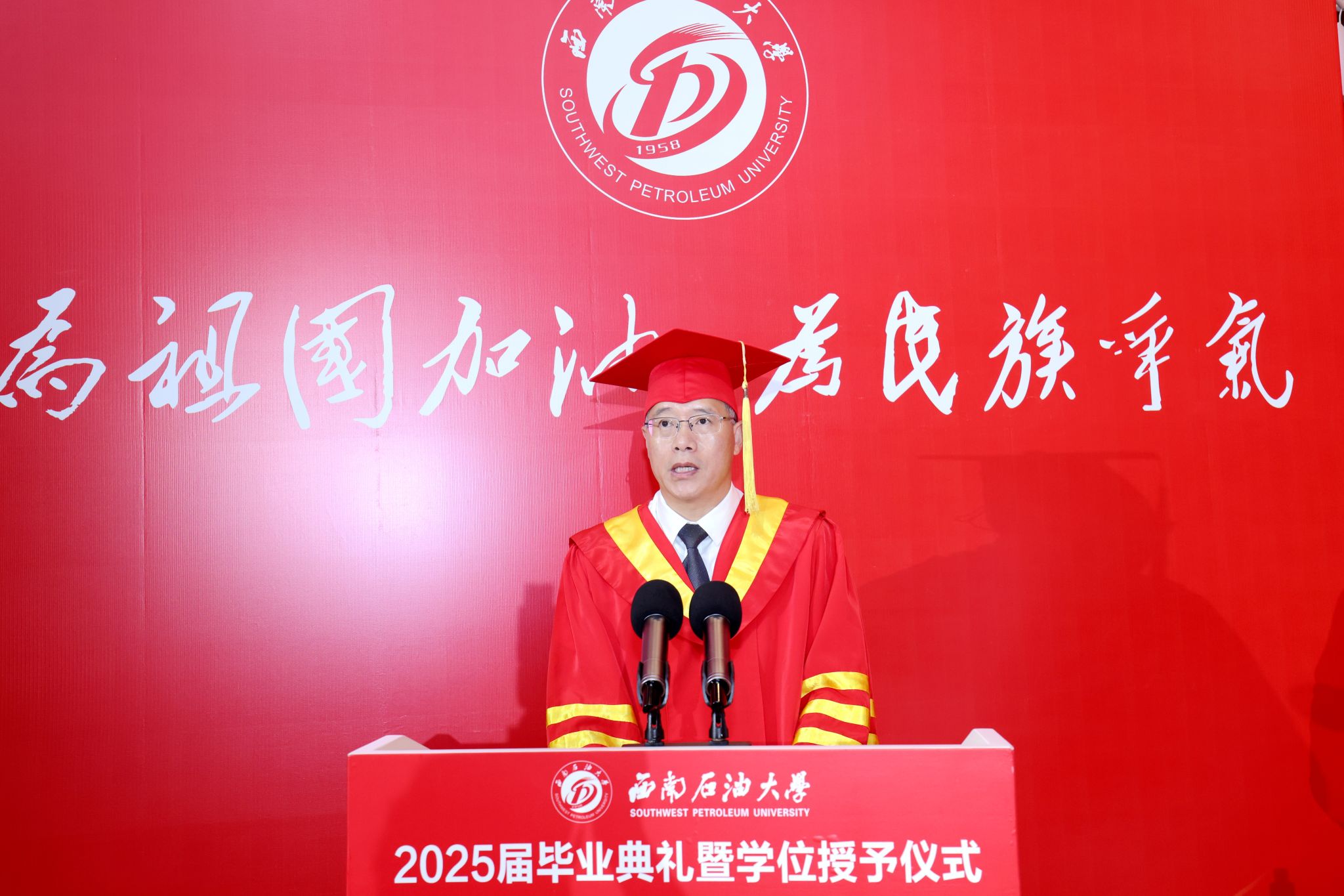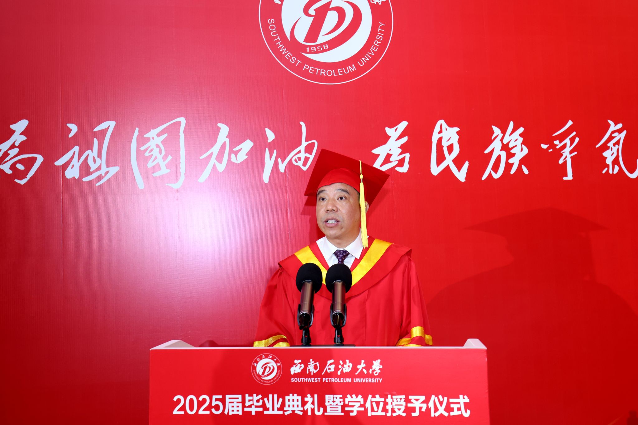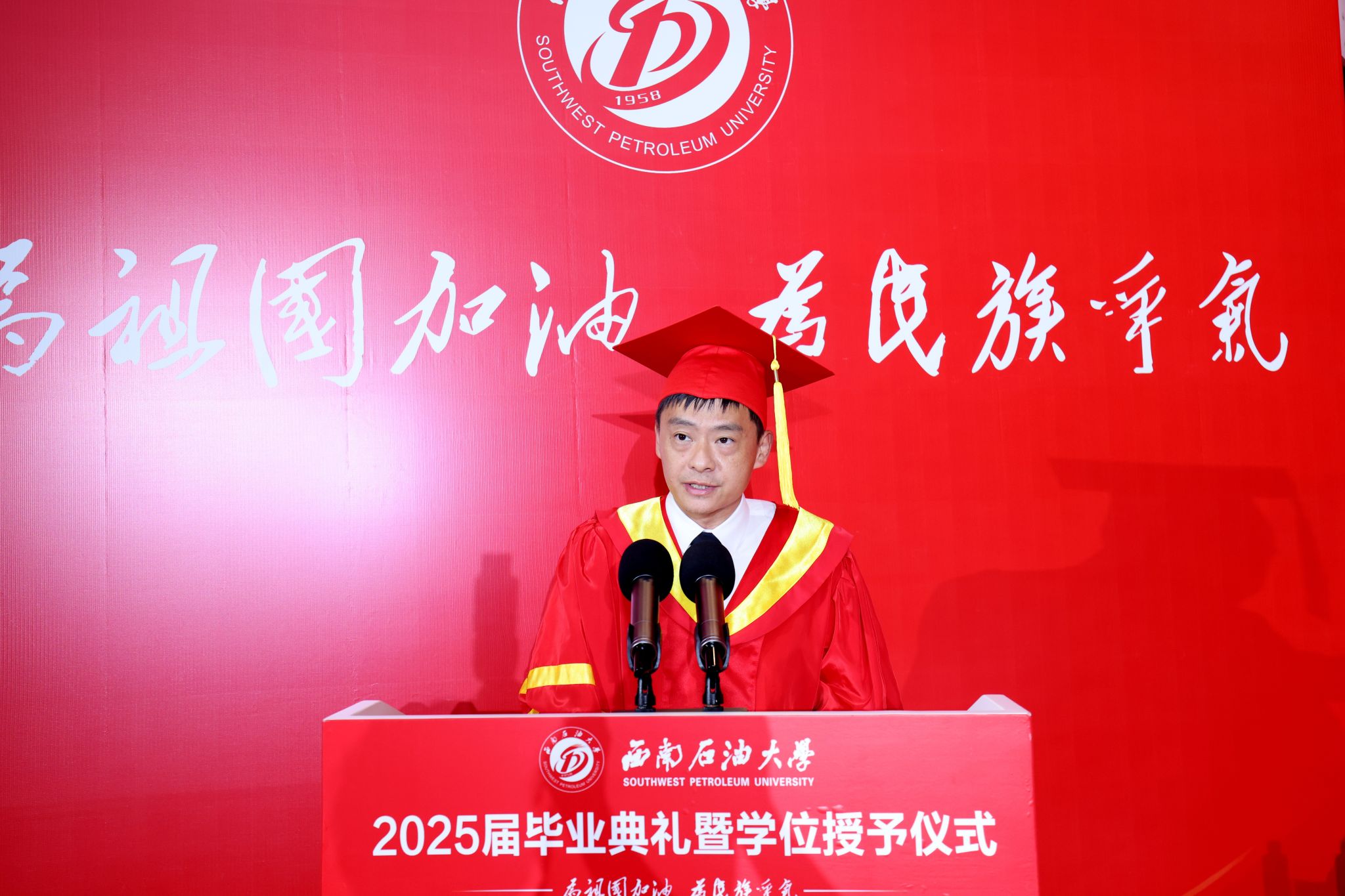 校党委副书记、校长郭建春向圆满完成学业、即将奔赴新征程的全体毕业生致以祝贺。他寄语同学们,立青云之志,以家国情怀锚定人生坐标,心怀高远立潮头,以“强国有我”的使命和“舍我其谁”的勇气,定位人生坐标,在服务国家战略需求的攀登中,铸就无愧时代的辉煌篇章。要砺笃行之功,以实干精神筑牢事业根基,苦干实干扎深根,用脚踏实地的持续奋斗诠释青春价值,在深耕细作中厚植人生根基,彰显奋进的力量。要铸坚韧之魂,以百折不挠直面时代挑战,希望你们百炼成钢志愈坚,受挫时不失其志,低谷时不改其向,在千锤百炼的磨砺中绽放耀眼光芒。要怀济世之情,以大爱担当成就生命高度,执爱为炬赴前程,在成就“小我”与奉献“大我”的融合中,抵达人生价值的最高处,成就大我之境。