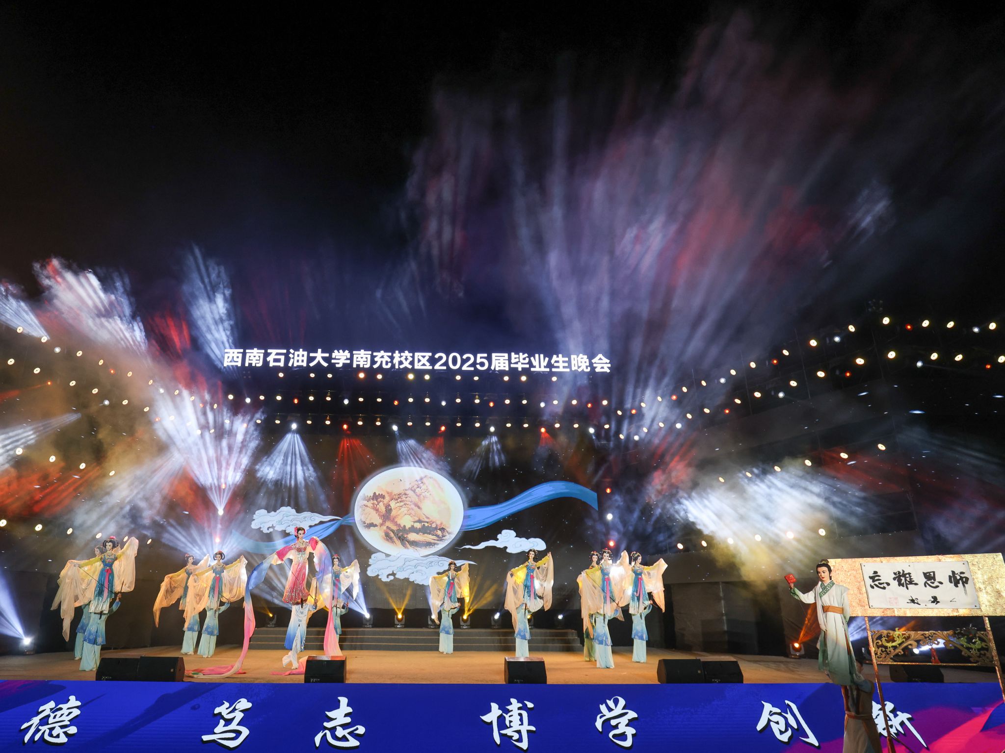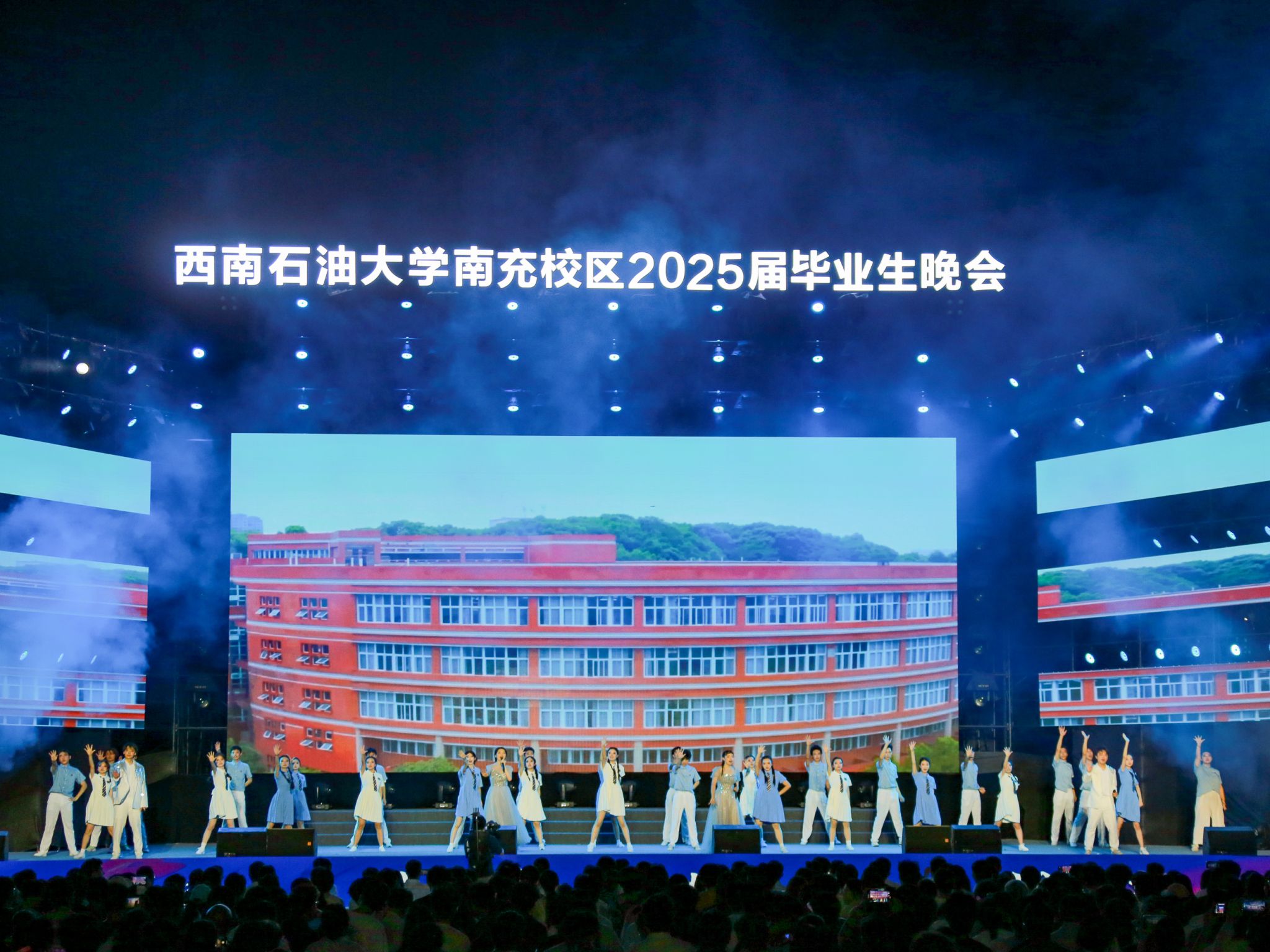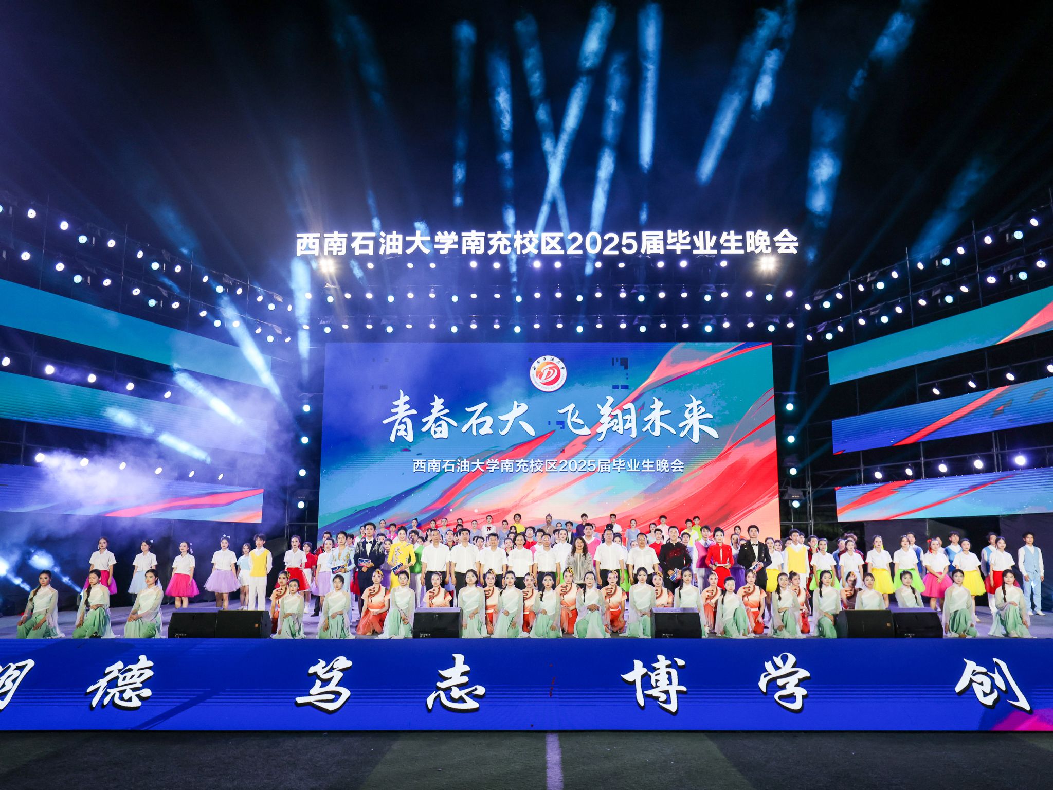 6月17日晚,龙井湖畔华灯璀璨,运动场上青春飞扬。2025届“青春石大 飞翔未来”毕业生晚会在南充校区田径运动场隆重举行。3000余名师生观看演出,共同见证这场青春盛典。