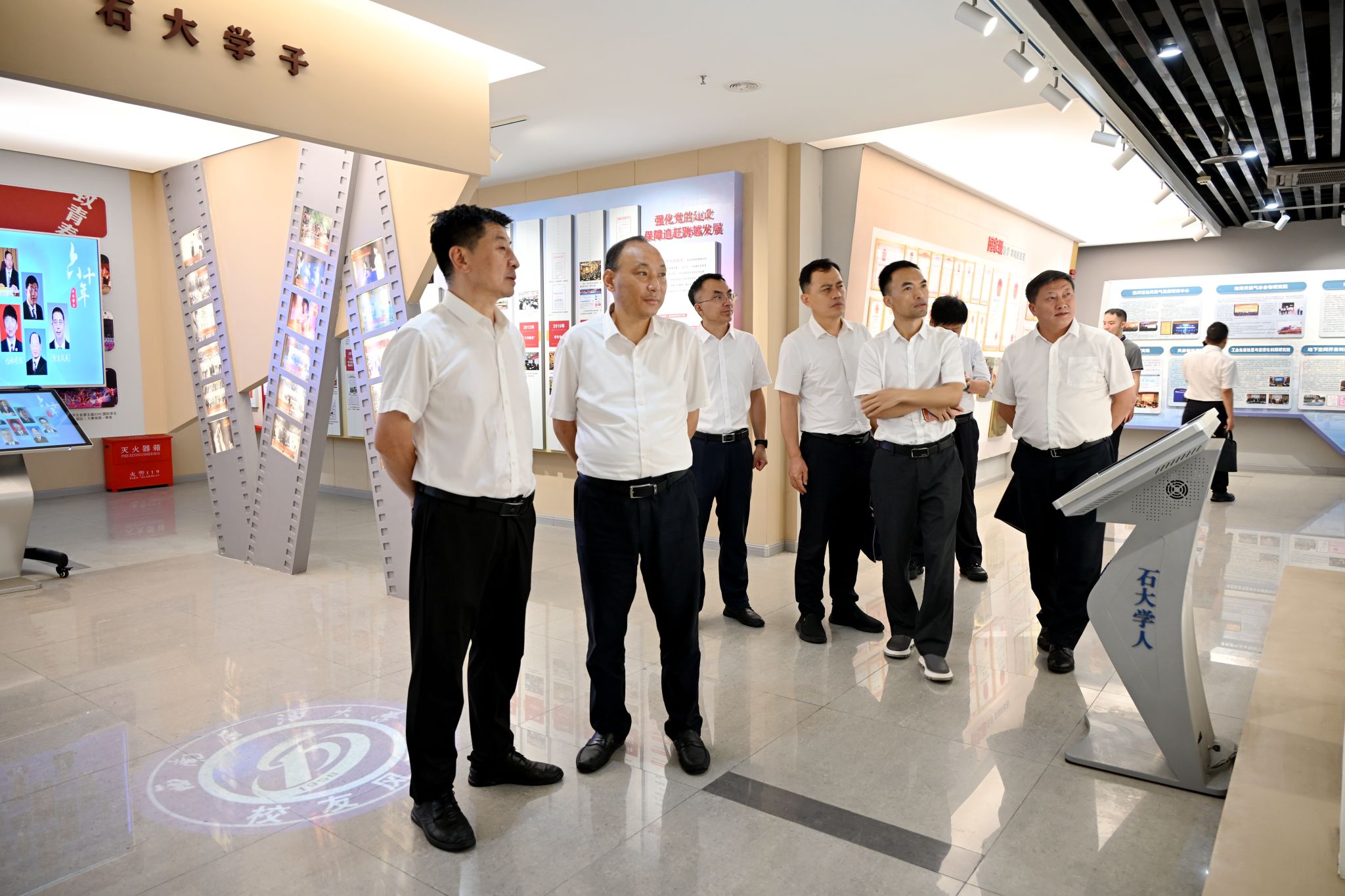 座谈会前,裴向军陪同王连华一行参观了校史馆。