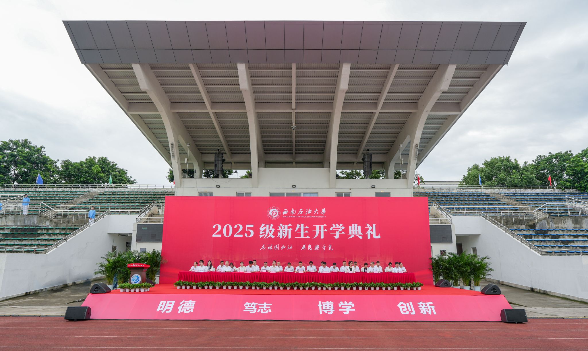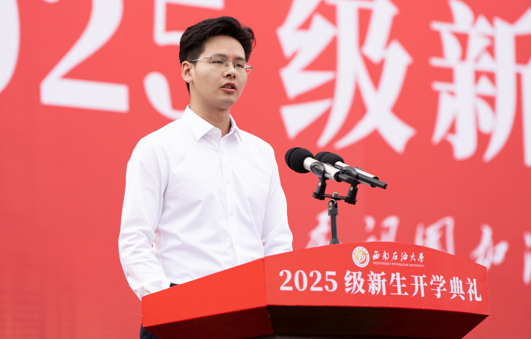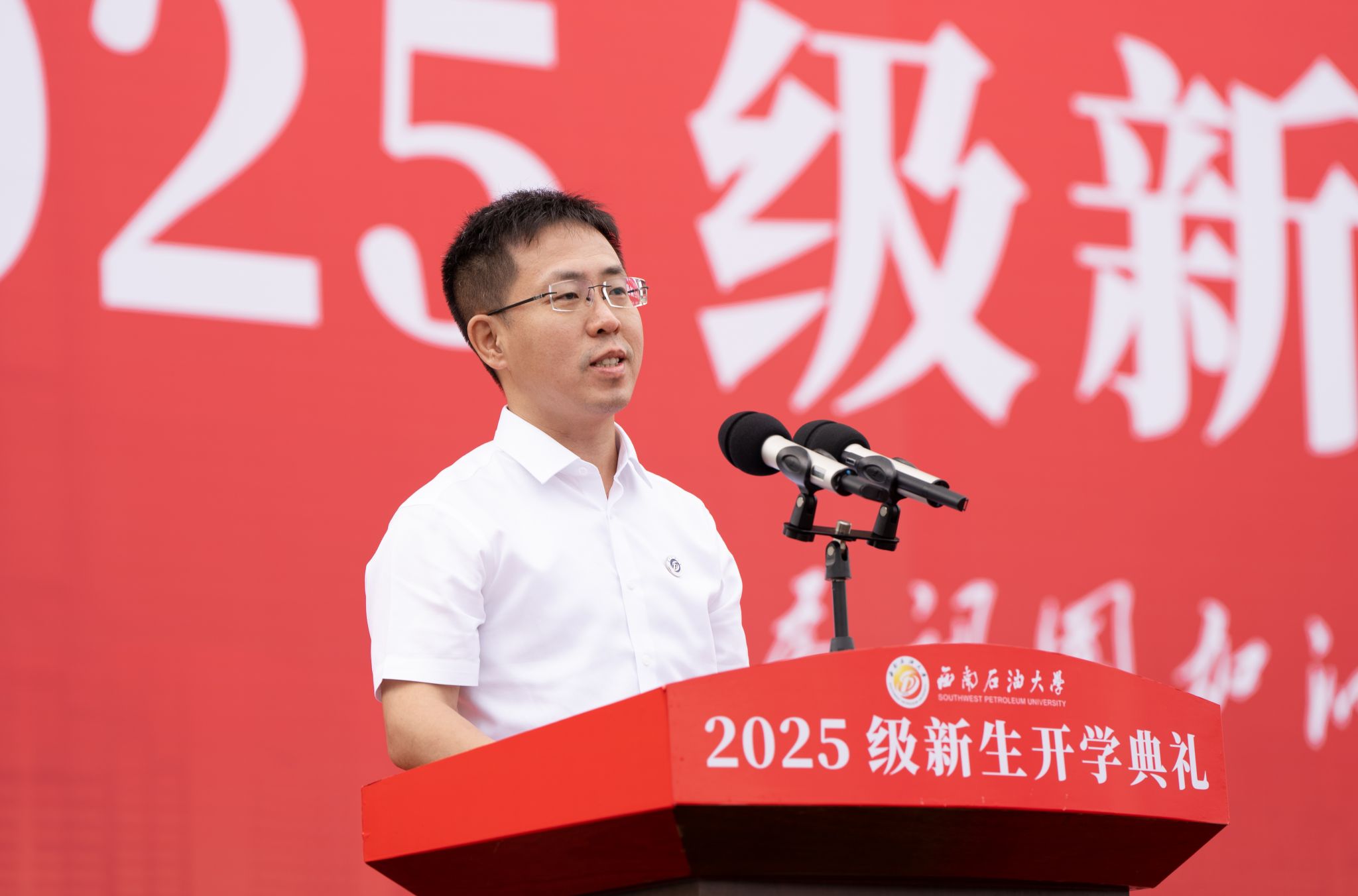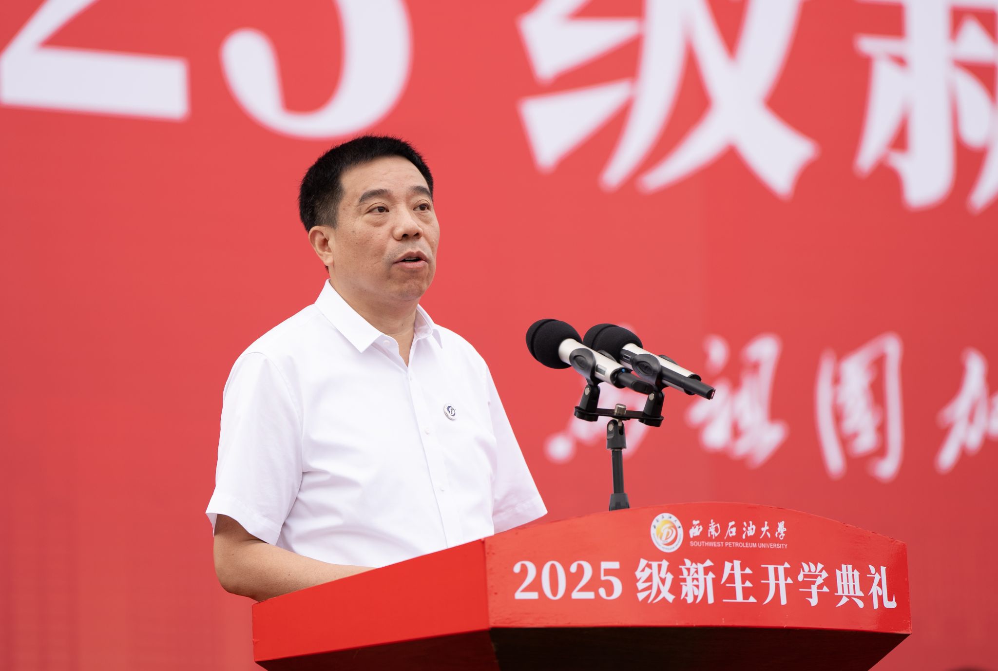 9月12日,西南石油大学2025级新生开学典礼在成都校区、南充校区同步举行。1.1万名新生满怀热忱,与石大共赴新征程。校领导张烈辉、郭建春、张明、丁林、刘向君、周莹、裴向军、张智出席,校党委副书记丁林主持仪式。