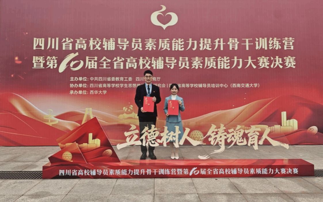 大赛由中共四川省委教育工委、四川省教育厅主办,来自全省125所高校的166名辅导员参赛。比赛分基础知识测试、学情分析、案例研讨、谈心谈话四个环节,全面考察辅导员的理论水平、专业素养和分析解决实际问题的能力。赛前,在学校党委关心和指导下,学工部、心理中心和相关学院精心组织、密切配合,邀请校内外专家进行全过程指导培训。比赛中,王鑫、薛静两位老师沉着应对,充分展示了我校辅导员昂扬的精神风貌和深厚的专业功底。