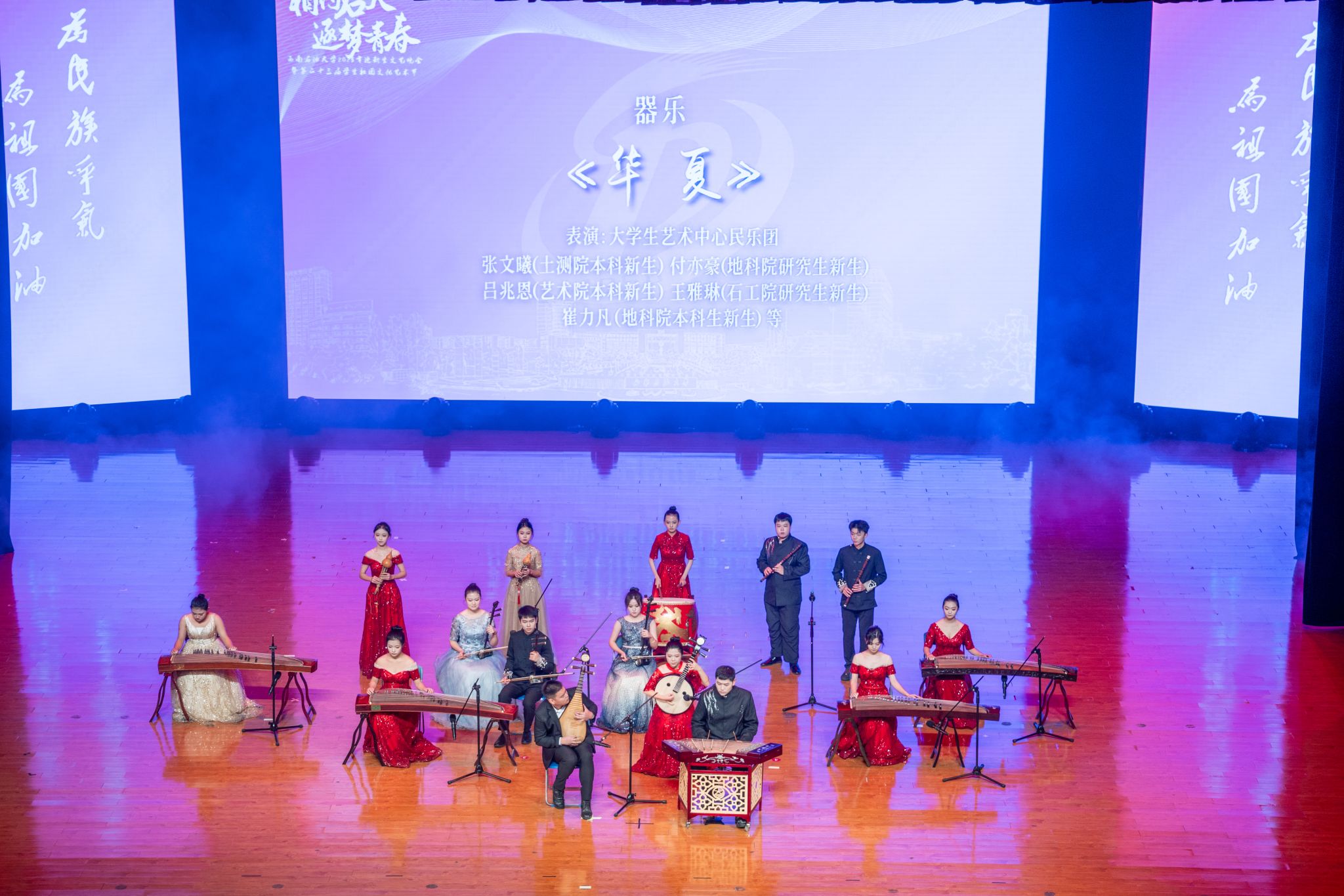 整场晚会分为“相逢石大·绽芳华”与“逐梦石大·向未来”两大篇章,汇聚了校内新生的青春风采。本次新生文艺晚会不仅是一场艺术的盛宴,更呈现了一堂别开生面的“入学教育课”,同时融合了地方企事业单位及兄弟学校的优质资源,展现了我校开放包容、协同育人的理念与朝气蓬勃的校园文化氛围。