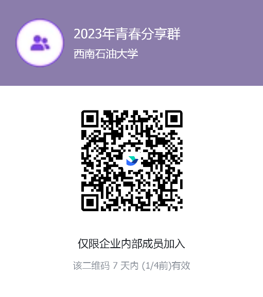 3.请获得学院推荐的学生于2023年1月3日(星期二)18:00前加入以下飞书群,学校将通过飞书群组织学生进行线上培训考核,未通过培训考核的学生不得代表学校面向中学开展青春分享活动。