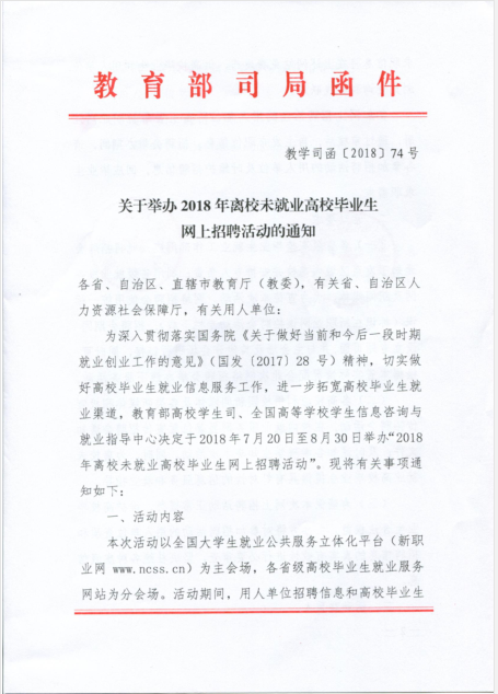 关于“举办2018年离校未就业高校毕业生网上招聘活动”的通知