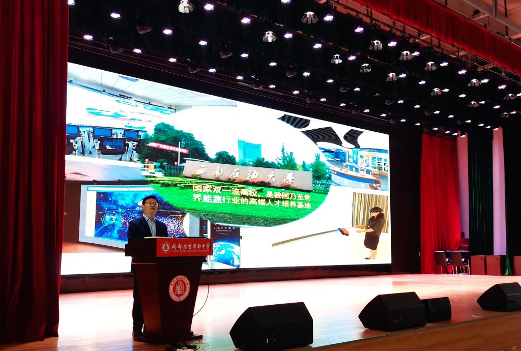 为进一步强化与中学间的交流互动,更好地服务中学师生,吸引更多优质生源,2023年3月28日下午,西南石油大学招生就业处副处长肖虎、地球科学与技术学院副院长范翔宇、电气信息学院辅导员冯冠钦一行赴成都石室蜀都中学开展科普讲座。