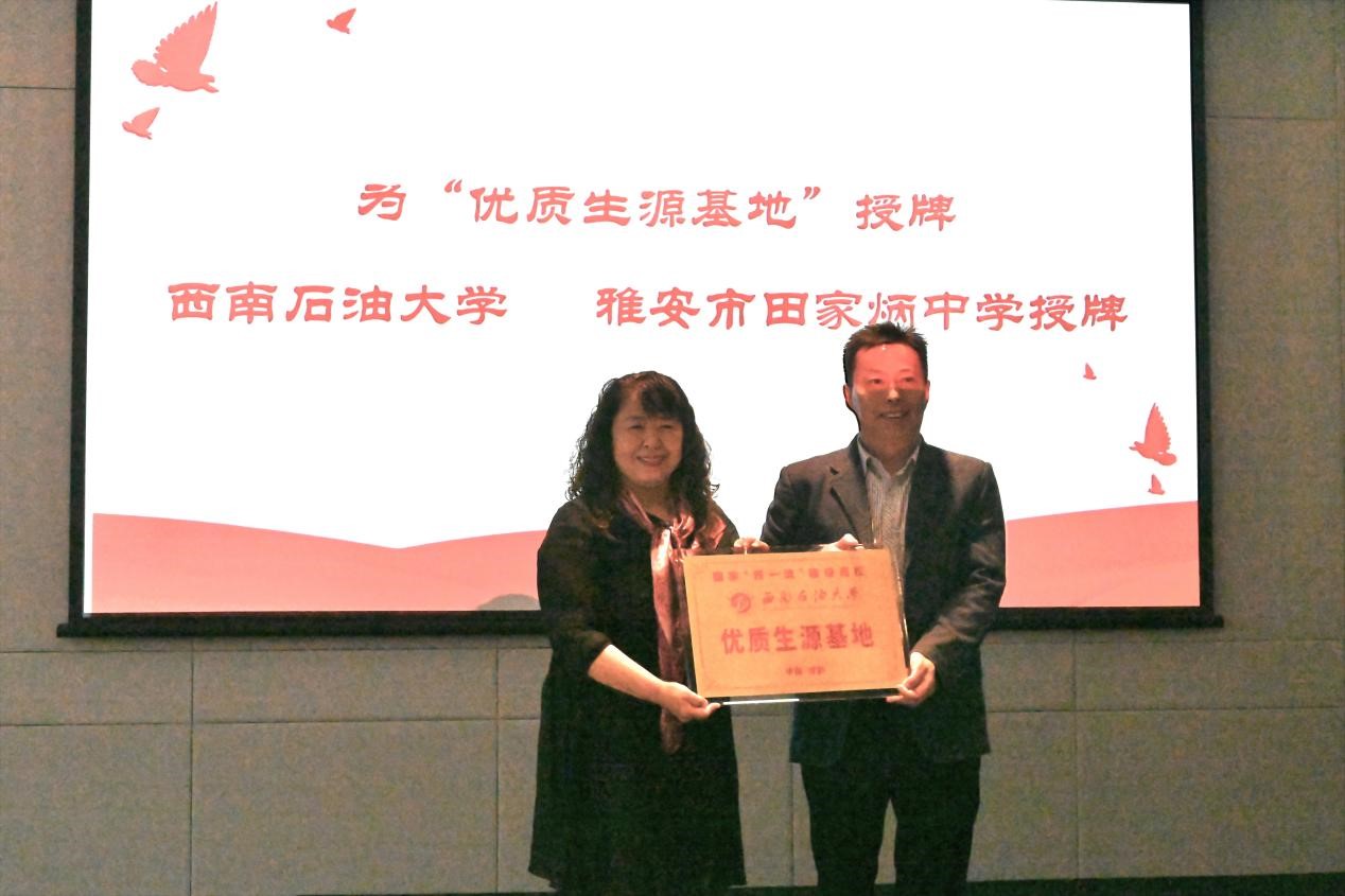 衡彤提到,西南石油大是国家“双一流”建设高校,近年来各市州为西南石油大学输送了大量的优质生源,诚挚的感谢各市州对西南石油大学的关心与支持,下一步,我们将继续深化在生涯指导、心理健康、知识普及等方面的合作,推动大中小学一体化建设。会上,为雅安中学、西昌天立学校、攀枝花市第七中学等16所中学授牌“优质生源基地”。